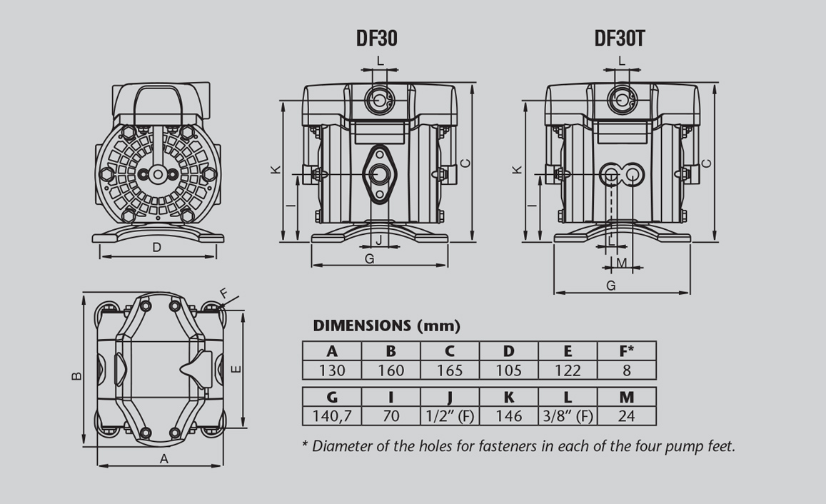 | Fluid Inlet Connection | DF30: 1/2" BSP (F) DF30T: 2 x 3/8" BSP (F) |