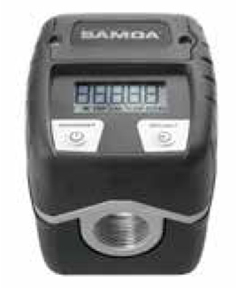 Oval gear meters for use as in-line meters with oil, DEF / AdBlue®, windshield wash solution or antifreeze solution, depending on the meter wetted materials. They can be wall mounted in the fluid line or at the pump outlet. Meters include an electronic register controlled by wetted magnets and powered with two AAA alkaline batteries. It is shock proof and isolated from the fluid handled. Meter display is multi-function, showing the volume dispensed per delivery, and has a permanent and a resettable (trip function) totalizers. The display can be programmed to show delivery in litres, quarts, pints and US gallons. The assembly is enclosed in TPE moulded shroud.