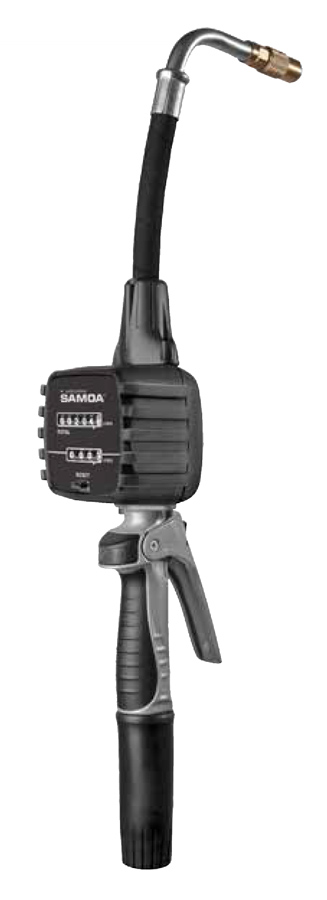 SAMOA mechanical metered control valves are used at the end of hose assembly for measured dispensing of lubricants and antifreeze solutions in tough, intensive use applications.