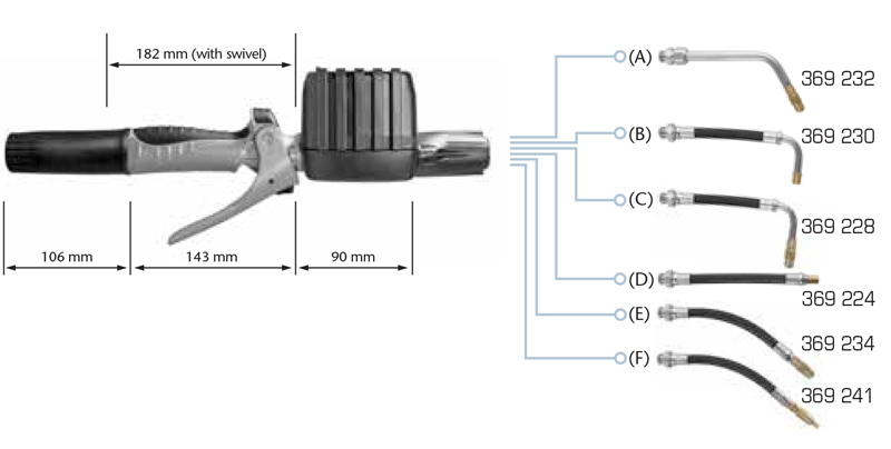 | 365 866 | 60º rigid with quarter turn non-drip tip | 369 232 | (A) |