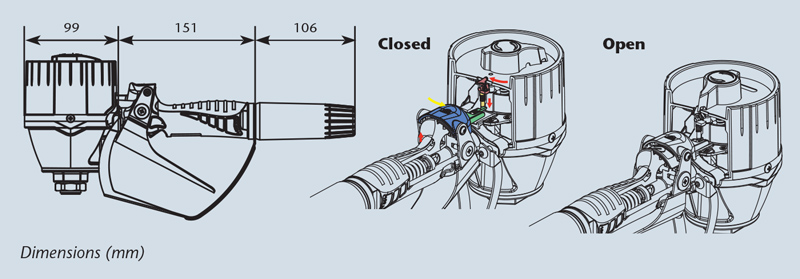 - High wear and stress resistant shut off mechanism.