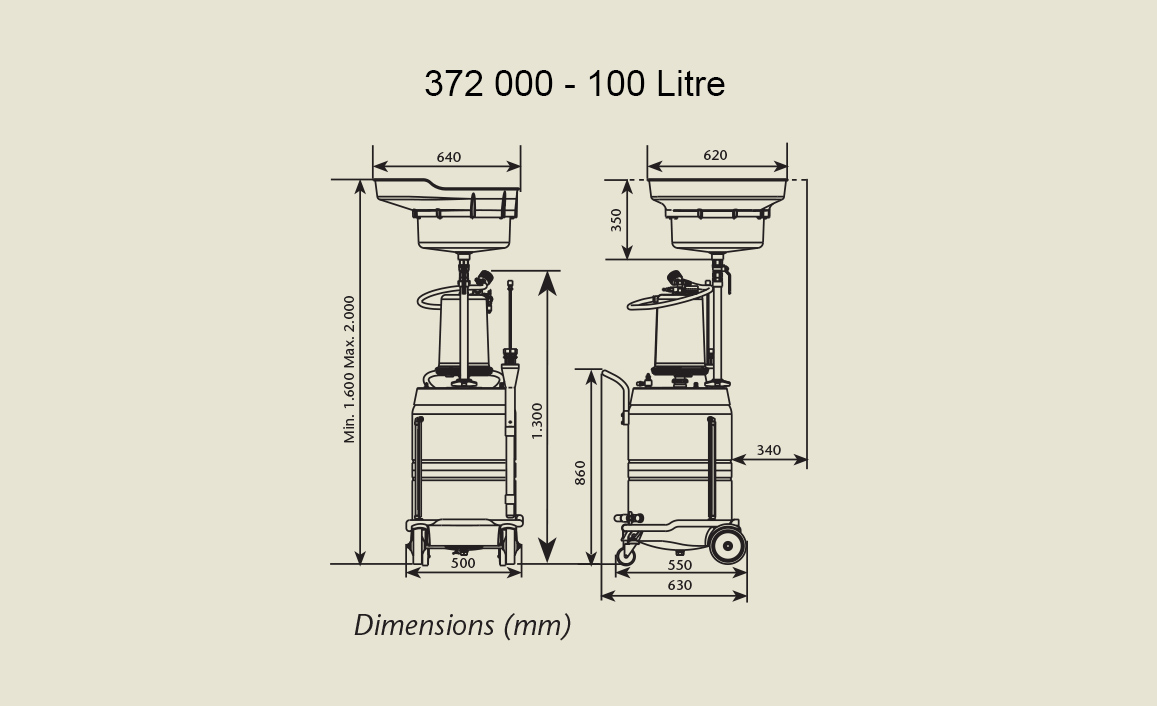 | 372 000 | 100 litres combined waste oil suction and gravity collection unit, with transparent chamber |
