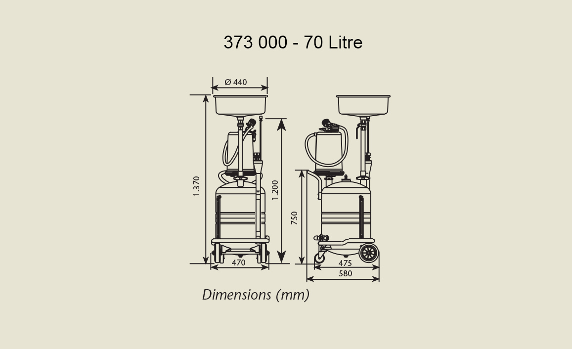 | 373 000 | 70 litres combined waste oil suction and gravity collection unit, with transparent chamber |