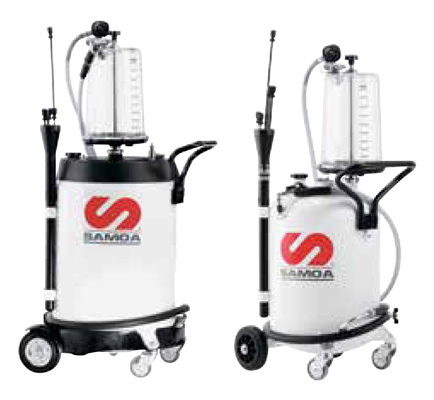 Units include a 10 litres transparent chamber that can be used as a vacuum reservoir and allows an immediate inspection of the extracted waste oil. They can be used remotely once vacuum is created inside the steel reservoir. Discharge through a 1,5 m discharge hose pressurizing the unit. Includes safety valve to avoid over pressurization.
